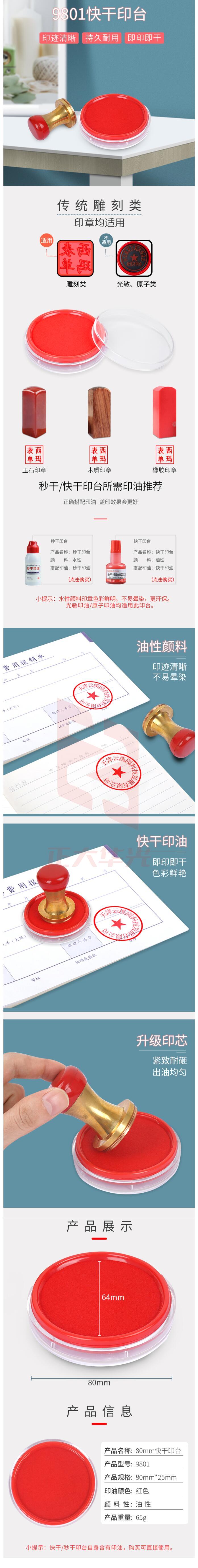 西玛(SIMAA)80mm 快干印台印泥 财务办公用品 红色圆形透明外壳 9801