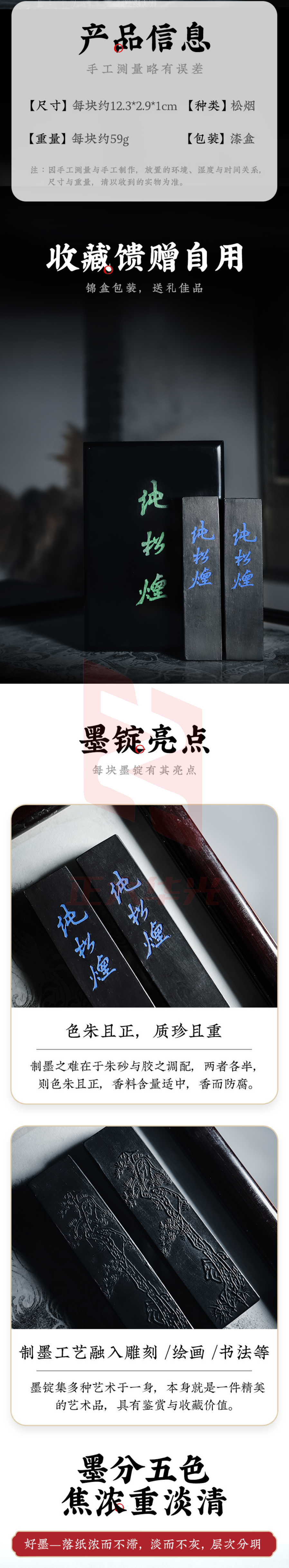 荣宝斋 屯溪胡开文松烟墨锭 文房四宝手工徽墨条墨块 纯松烟
