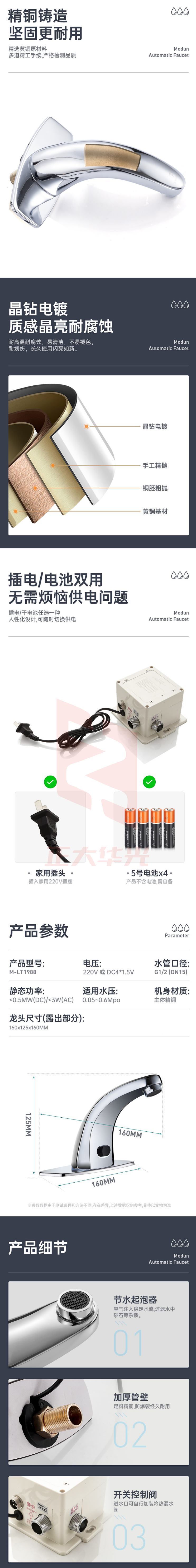 莫顿 M-LT1988 精铜智能单冷感应水龙头 全自动红外线感应式洗手器面盆龙头