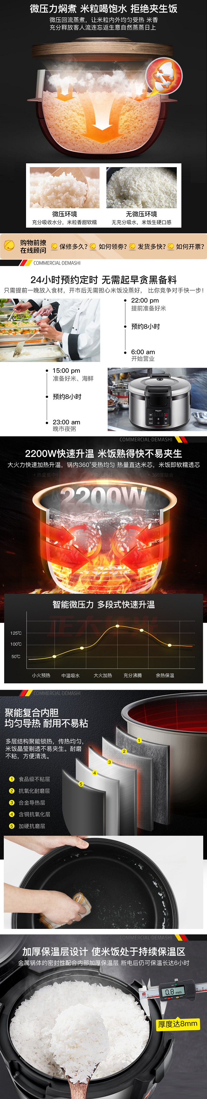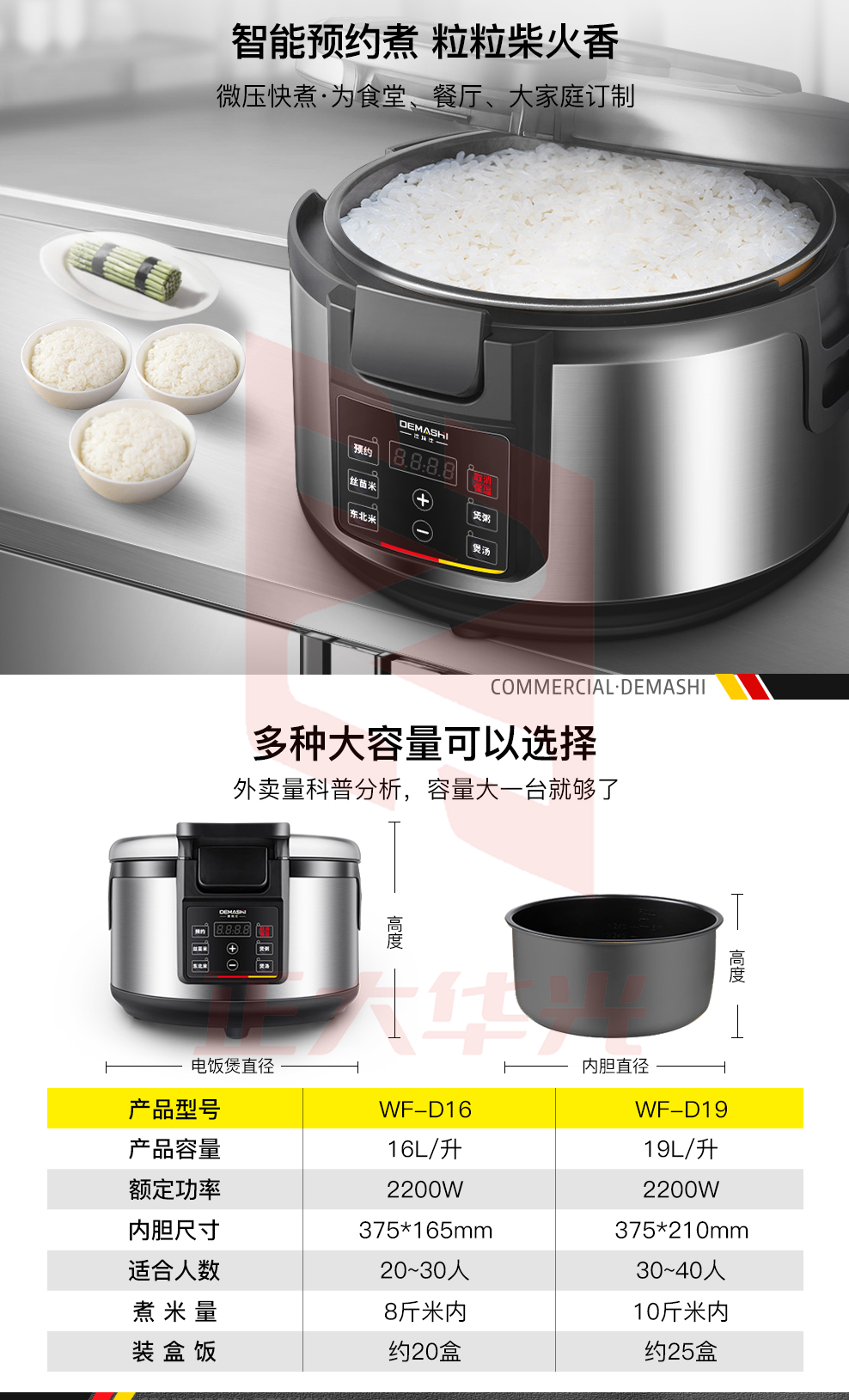 德玛仕(DEMASHI)商用电饭煲 特大号电饭锅食堂饭店保温蒸饭锅 老式大容量家用10人20人以上用 19L【30-40人适用】