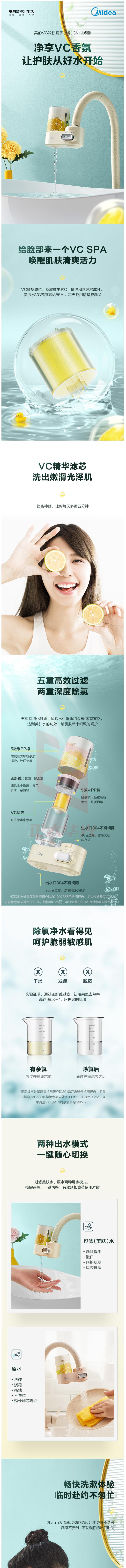 美的 洗漱龙头过滤器QVC530小橙粉 小蔷薇 VC精华滤芯 五重高效过滤 活性炭除氯 粉色
