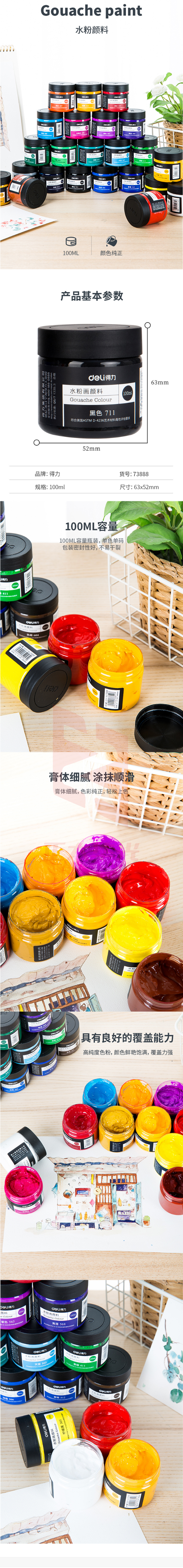 得力73888 100ml水粉颜料 桔黄(桔黄)