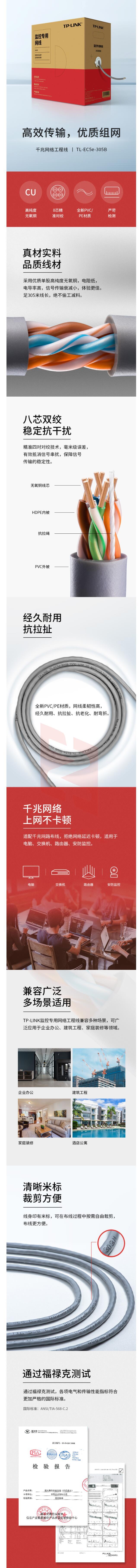 TP-LINK 超五类性能千兆网线 原装非屏蔽高速工程网线 纯铜双绞线 家装网络监控布线100米箱线EC5e-100B