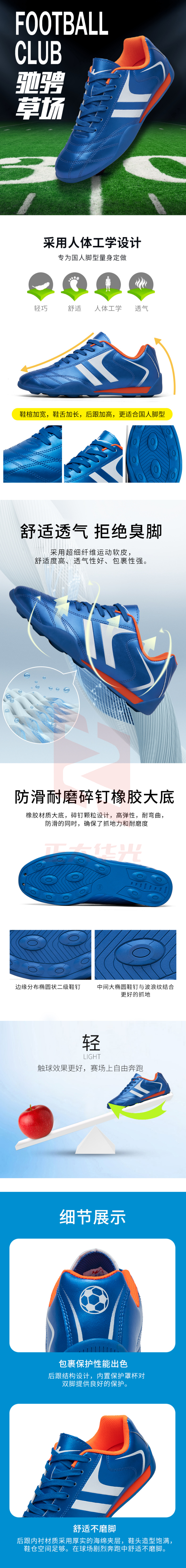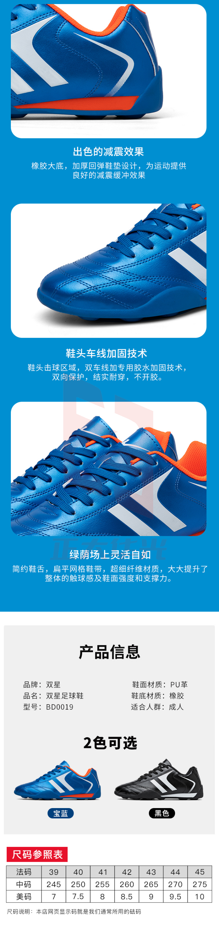双星足球鞋男子碎丁足球鞋TF短钉足球训练鞋 BD0019 宝蓝 (39-45 下单前请先咨询颜色及尺码)