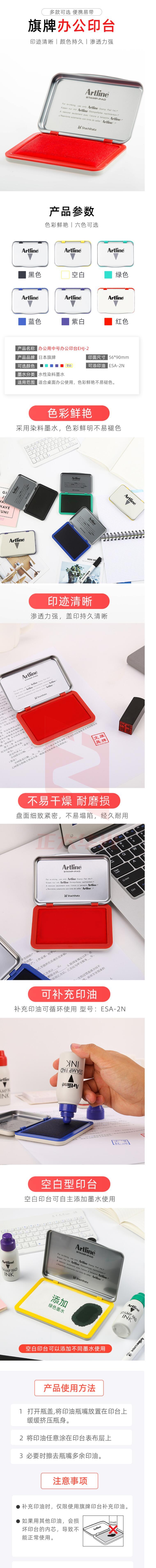 旗牌(Shachihata)Artline 办公财务速干快干秒干印章印台印泥通用印台 56*90mm 红色 EHJ-2
