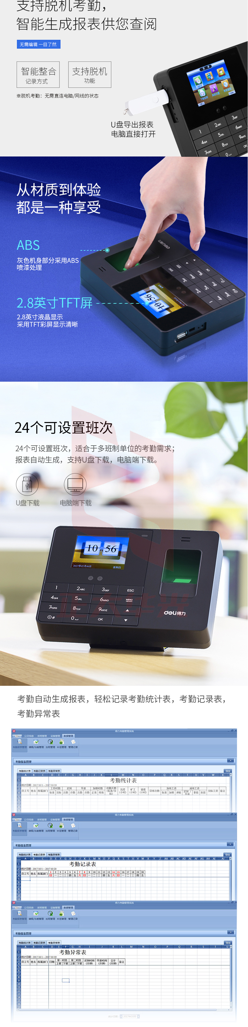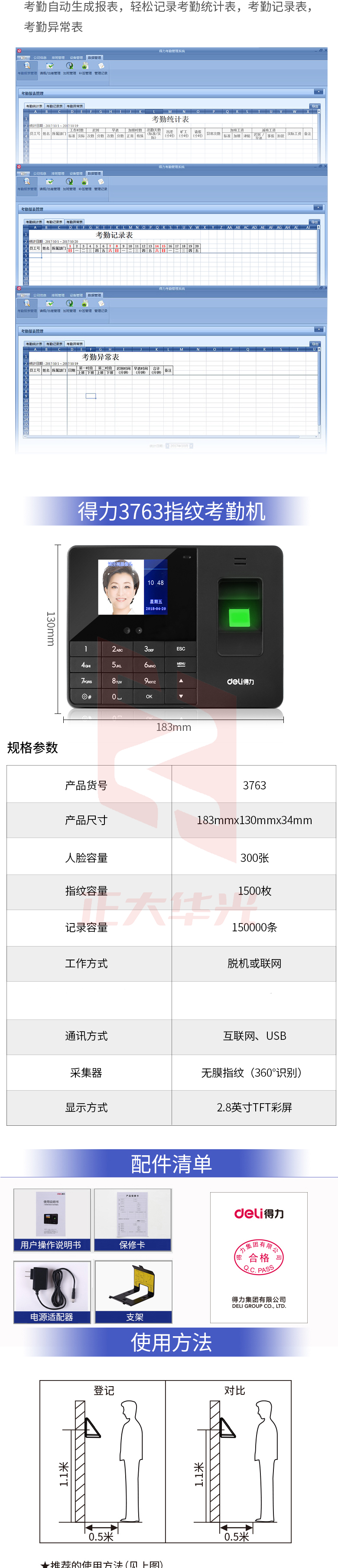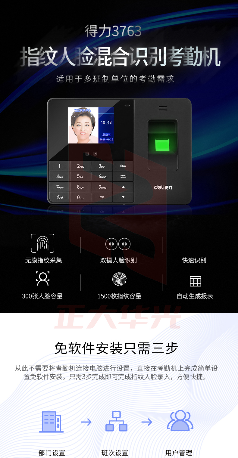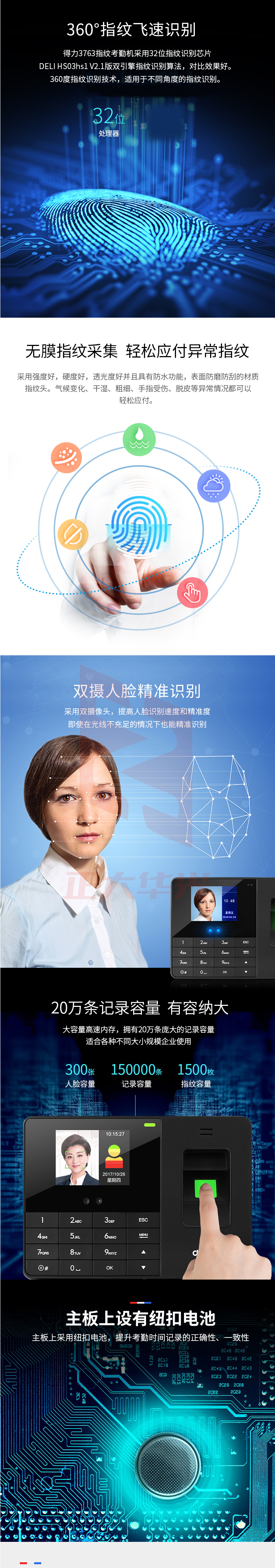 得力(deli) 3763人脸考勤机 指纹机 打卡机 签到机 人脸/指纹考勤机