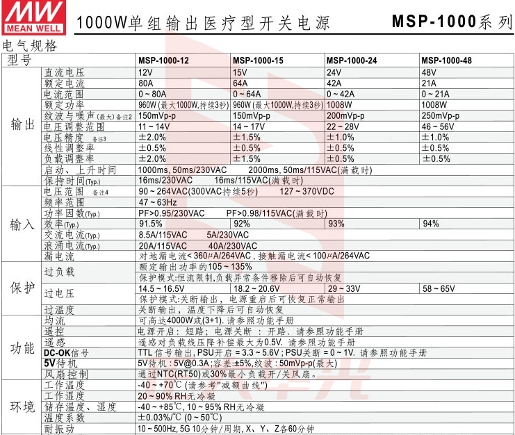 明纬(MEANWELL)MSP-1000-15 高性能精密开关电源机械设备驱动模块 明纬电源15V64A