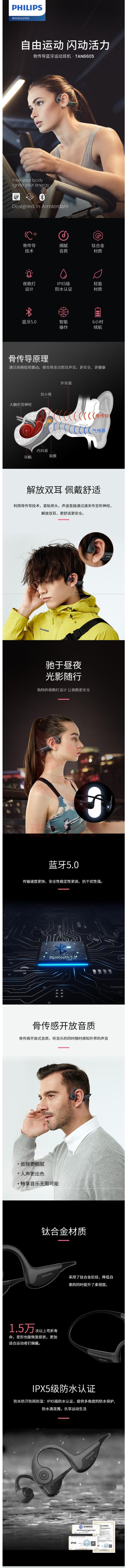 飞利浦(PHILIPS)TAN6605骨传导耳机 专业跑步运动耳机 蓝牙无线 防水挂脖式耳机 苹果安卓手机通用 N6605