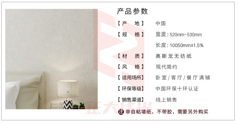 玉兰简约现代纯色壁纸无纺布客厅卧室背景墙素色蚕丝墙纸 NVP382403