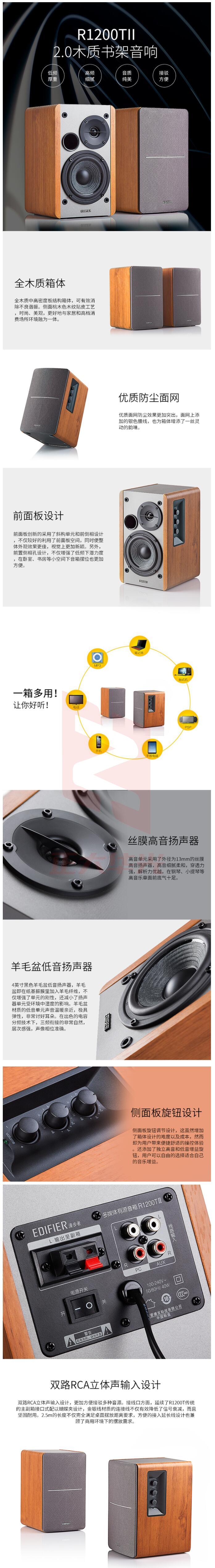 漫步者(EDIFIER) R1200TII 2.0多媒体音箱音响 笔记本台式电脑音箱 书架音箱