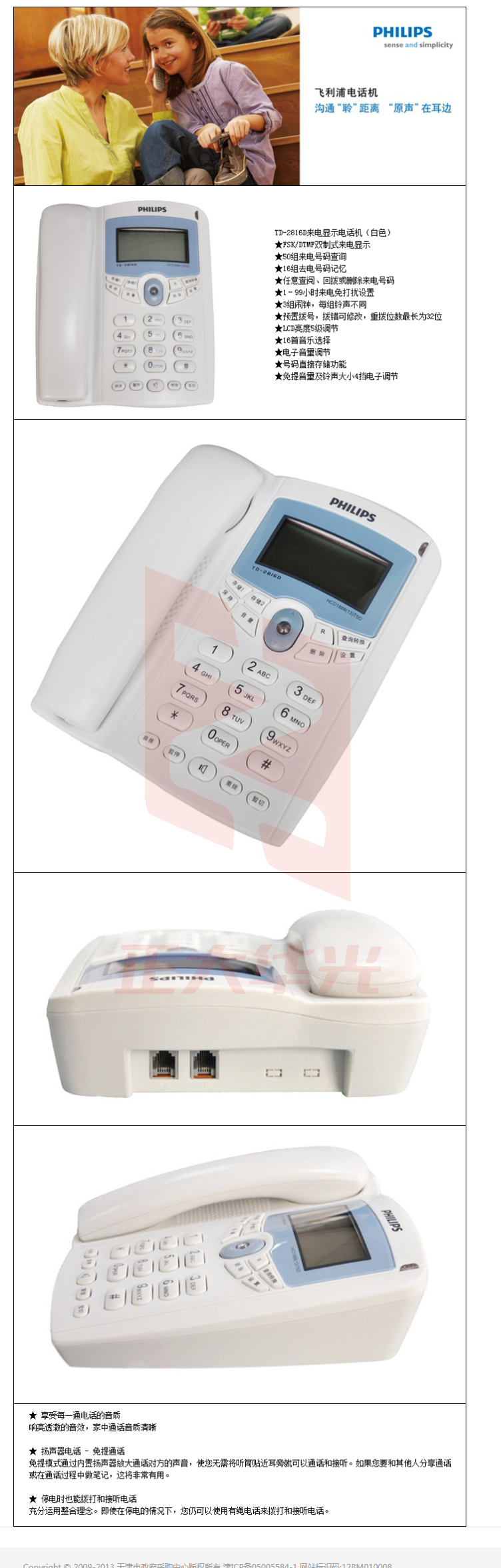 飞利浦 TD-2816 普通来显电话机 白色 1台