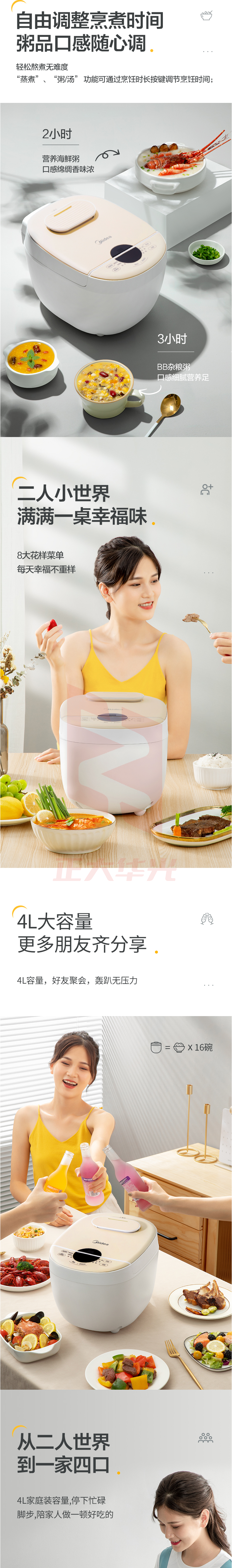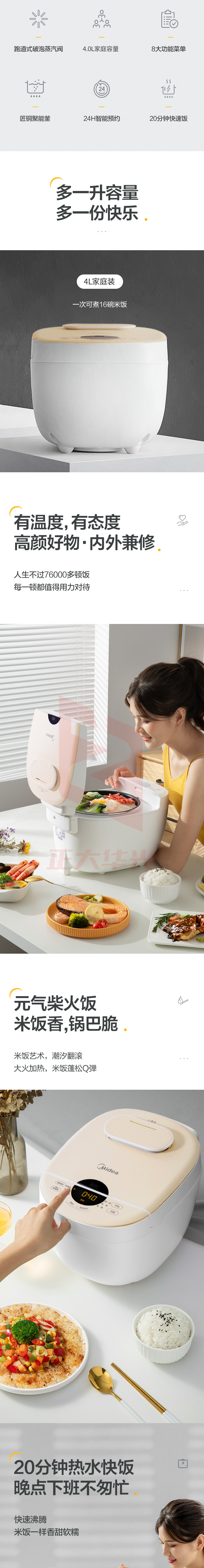 美的 电饭煲 AFB4028R 家用4L升电饭锅5-8人 多功能预约定时 破泡蒸汽阀盖板可拆