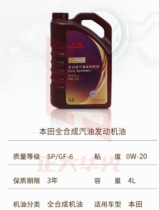 本田(HONDA)原厂纯正全合成机油0W-20 4L小保养套餐 (机滤+垫片)广汽紫桶
