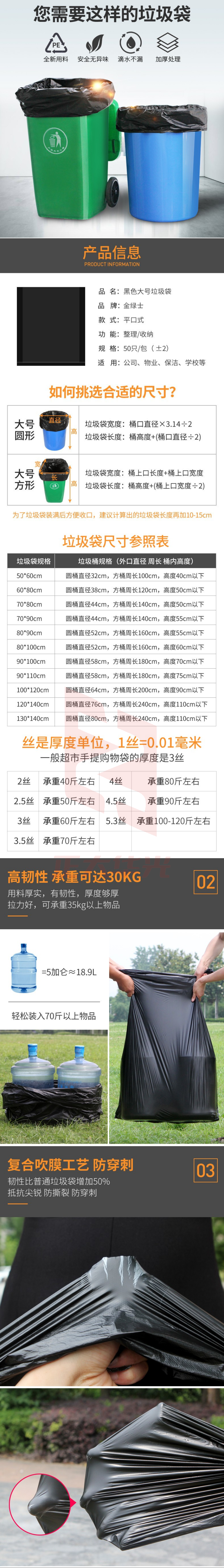 金绿士【黑色100*120/50只】大号黑色塑料袋大垃圾袋加厚特大装被子打包垃圾袋