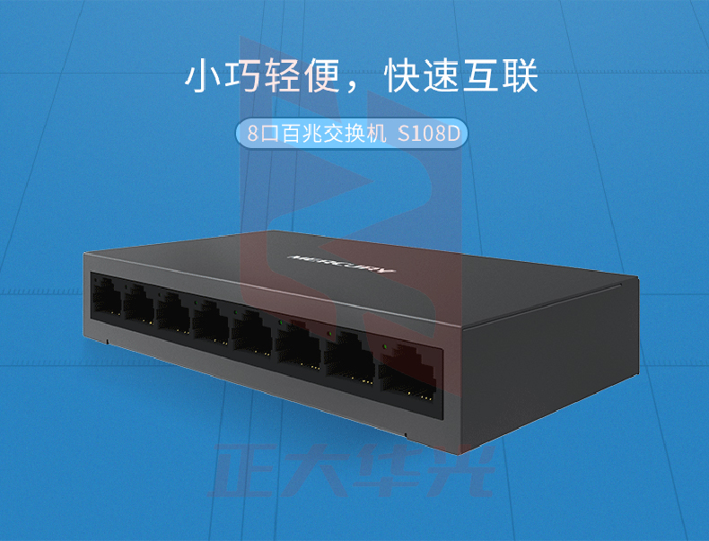 水星(MERCURY)S108D 8口百兆钢壳交换机 网线网络分线器 家用宿舍监控工程分流器