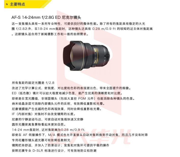 尼康(Nikon)AF-S 尼克尔 14-24mm f/2.8G ED 广角变焦镜头