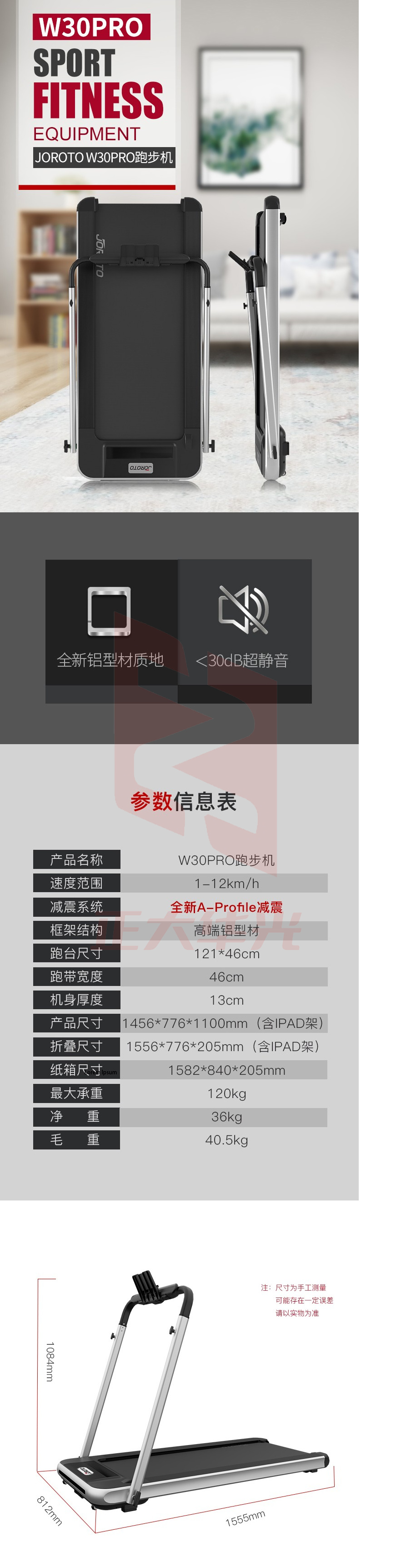 JOROTO跑步机家用静音迷你小型走步机运动健身器材W30PRO