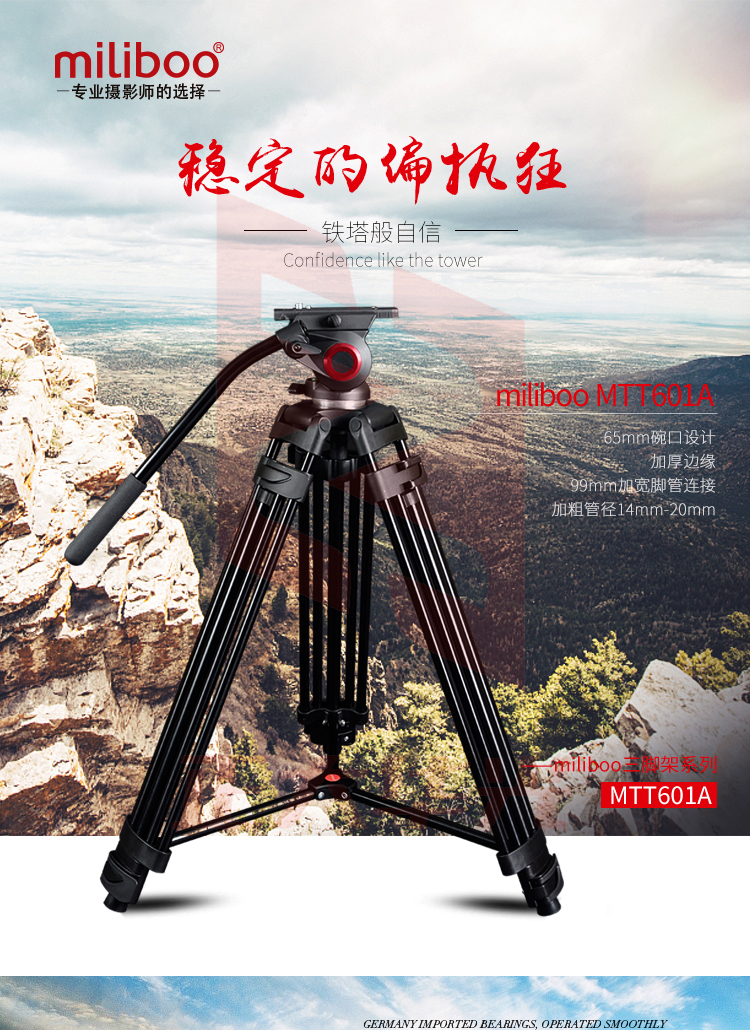 miliboo米泊MTT601A摄像机三脚架打鸟单反三角架 摄影相机架 带液压云台套装