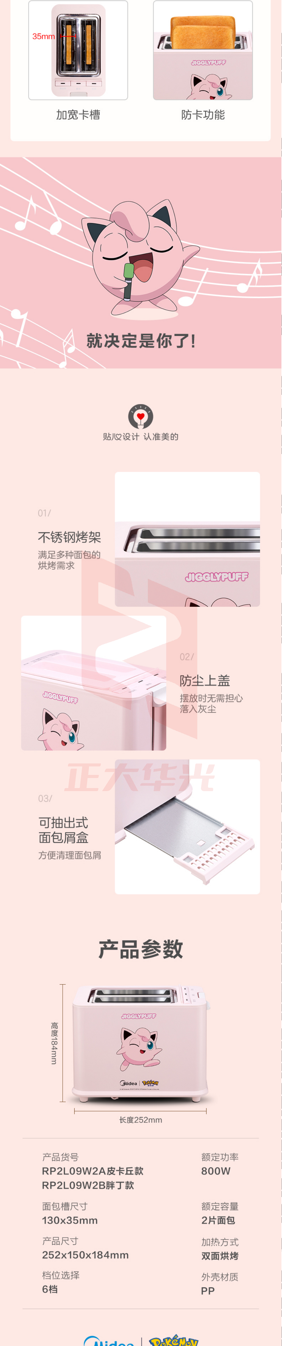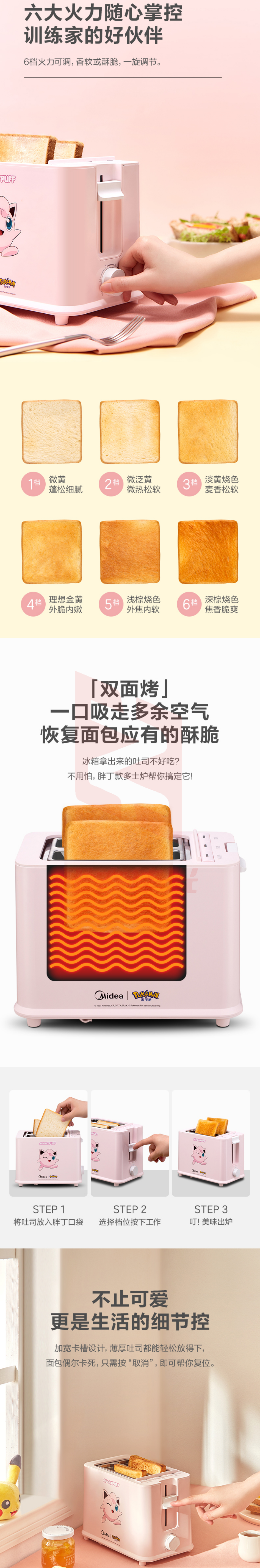 美的 多士炉 面包机家用小型 煎烤煮多功能烤面包 RP2L09W2A 联名皮卡丘