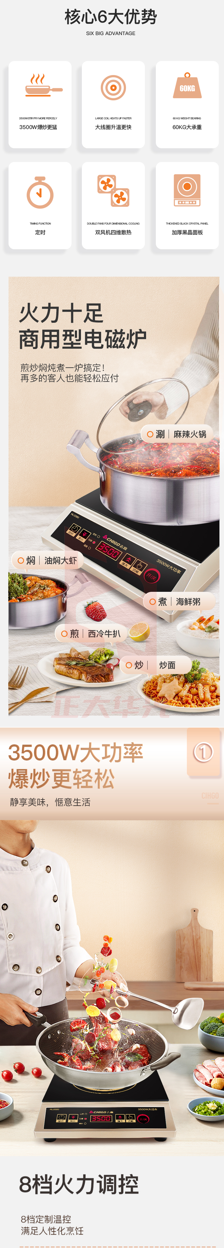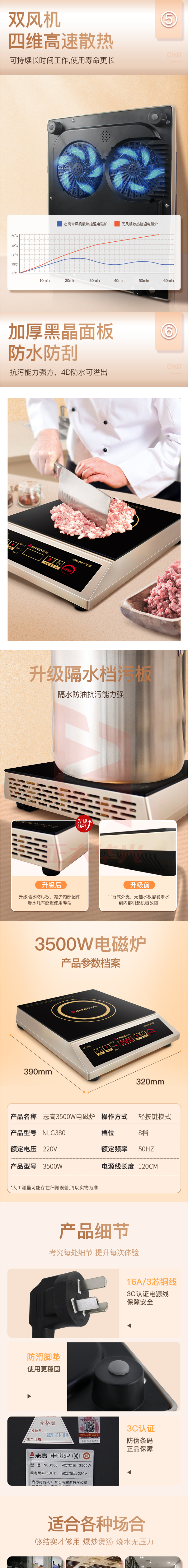 志高 商用电磁炉电池炉3500W 平面大功率商用 G380