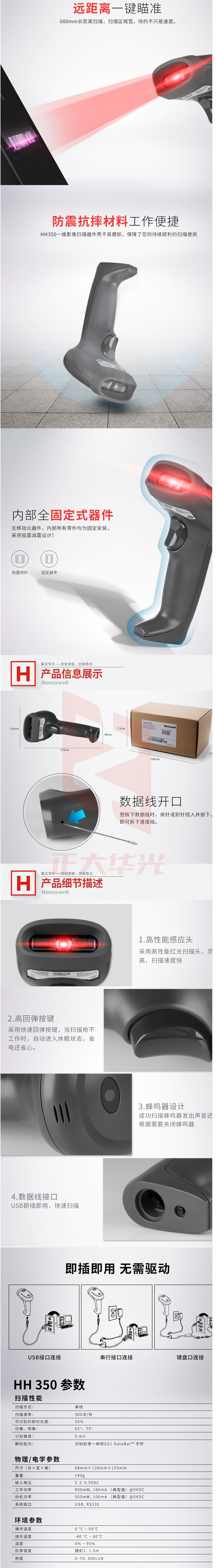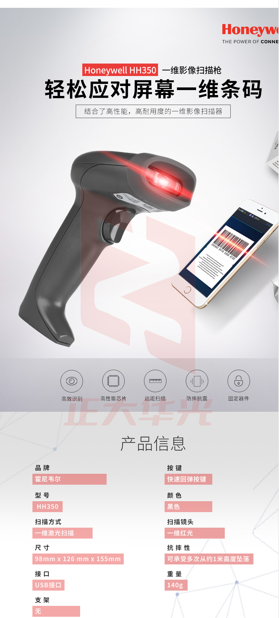 霍尼韦尔(Honeywell) 扫描枪 一维可扫电子屏幕扫描器 物流扫码枪 航空灰 HH350