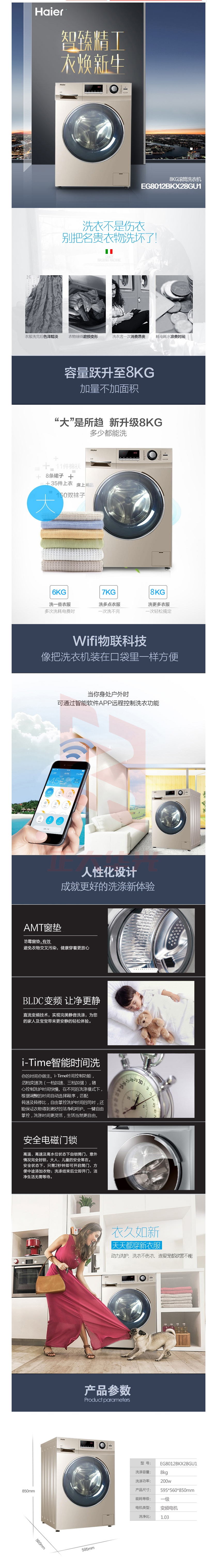 海尔 EG8012BKX28GU1 洗衣机 滚筒 1级能效 电脑控制 8公斤 变频 香槟金色