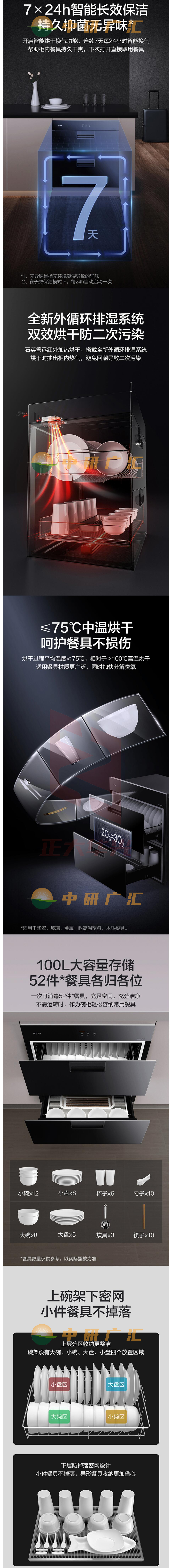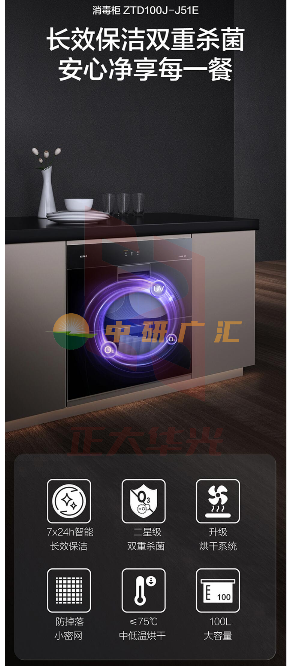方太消毒柜家用嵌入式消毒筷碗柜100L双层大容量下密网设计二星级紫外线消毒杀菌 ZTD100J-J51E