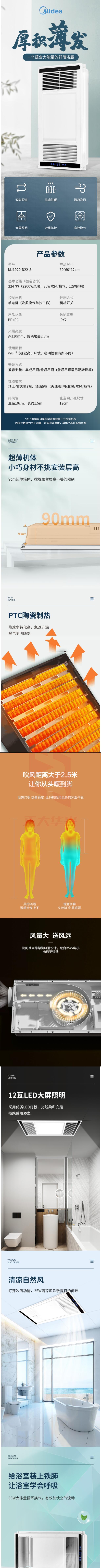 美的 Midea 浴霸风暖浴室卫生间暖风机照明换气吹风一体取暖器超薄浴霸灯 MJ1920-D22-S