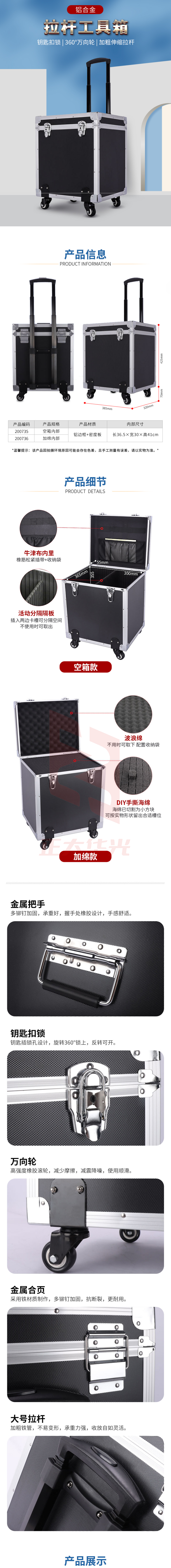 安赛瑞 铝合金拉杆箱 多功能电工五金工具箱 设备仪器仪表收纳箱 加绵黑色 200736