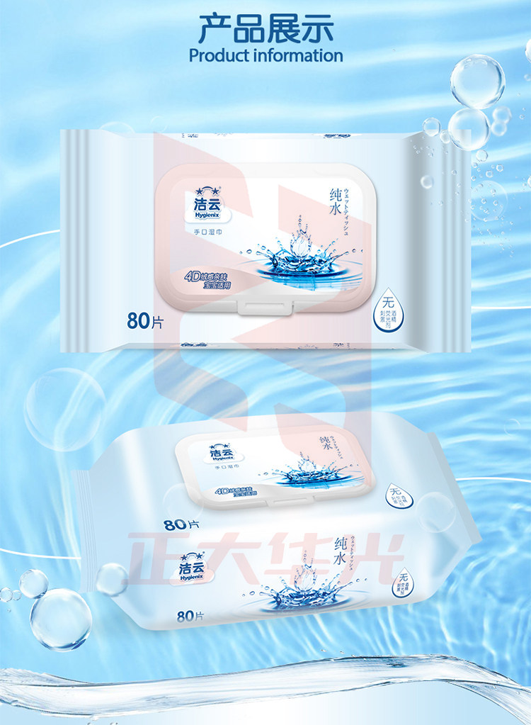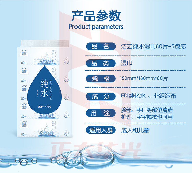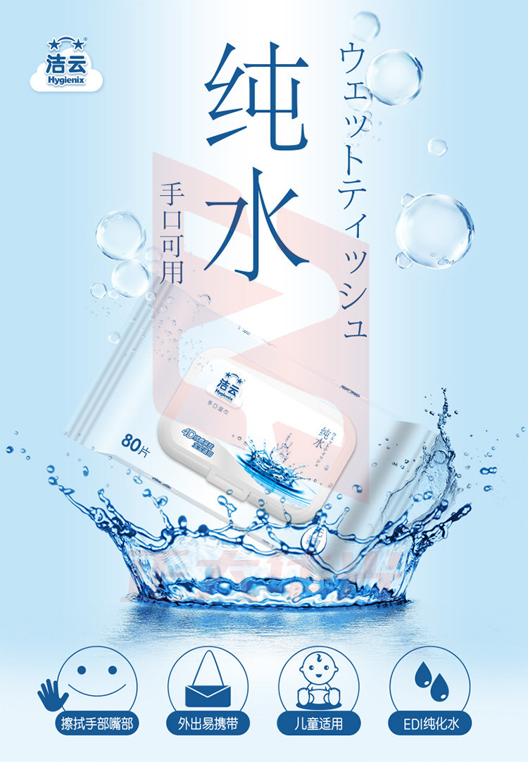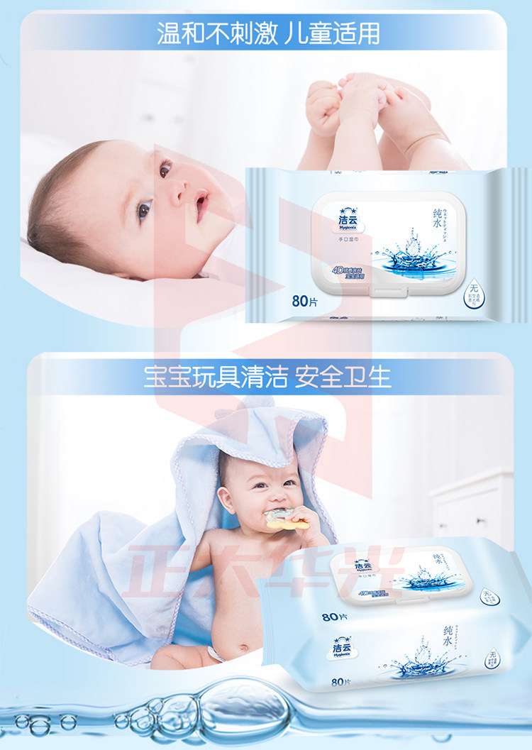 洁云EDI纯水湿巾清洁手口80片婴儿宝宝亲肤湿纸巾无添加家用