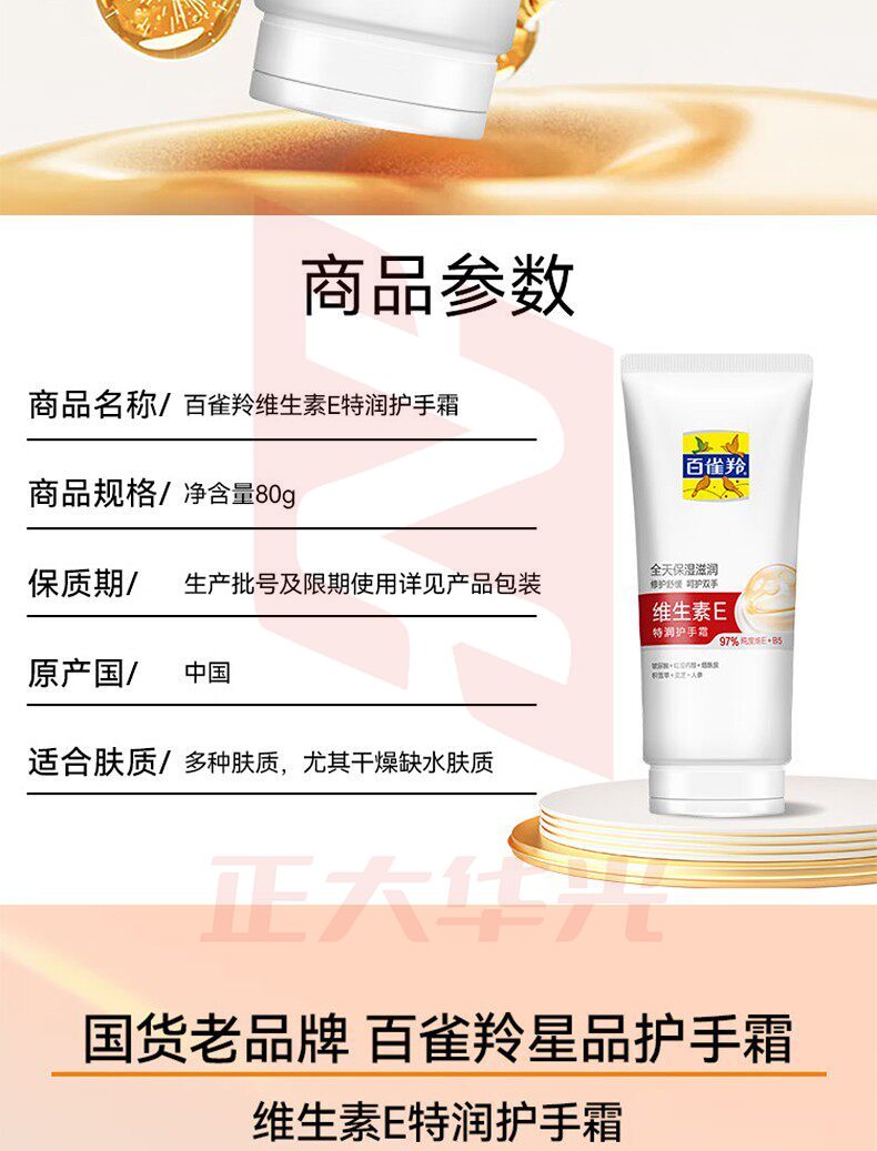 百雀羚维生素E特润护手霜女男滋润保湿长效补水防干裂专用秋冬季