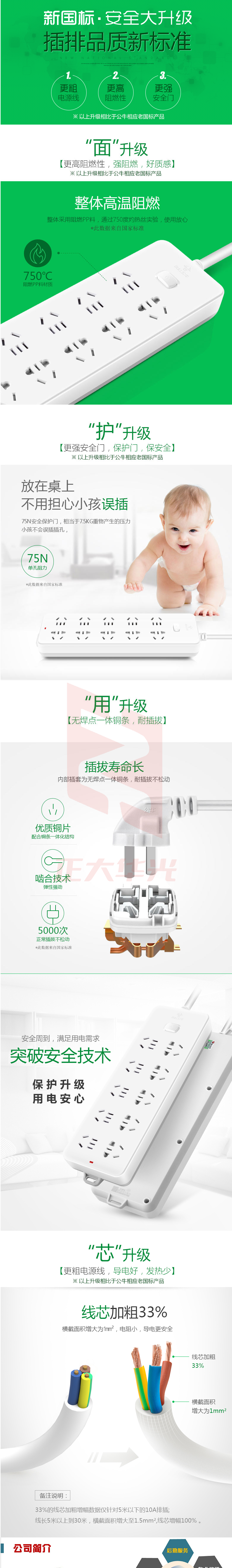 公牛(BULL)GN-218 3米 10A 250V 多位插座