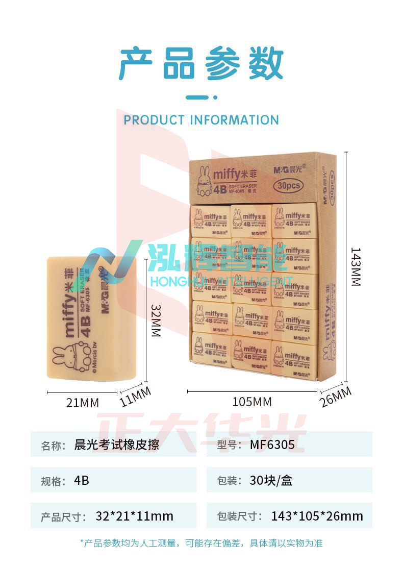晨光 MF6305 4B黄色小号橡皮 30块/盒(单位:盒)XTGM01291302425787