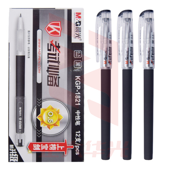 晨光0.5mm黑色中性笔 全针管拔盖签字笔水笔 12支/盒KGP1821 XTGM01281409187622