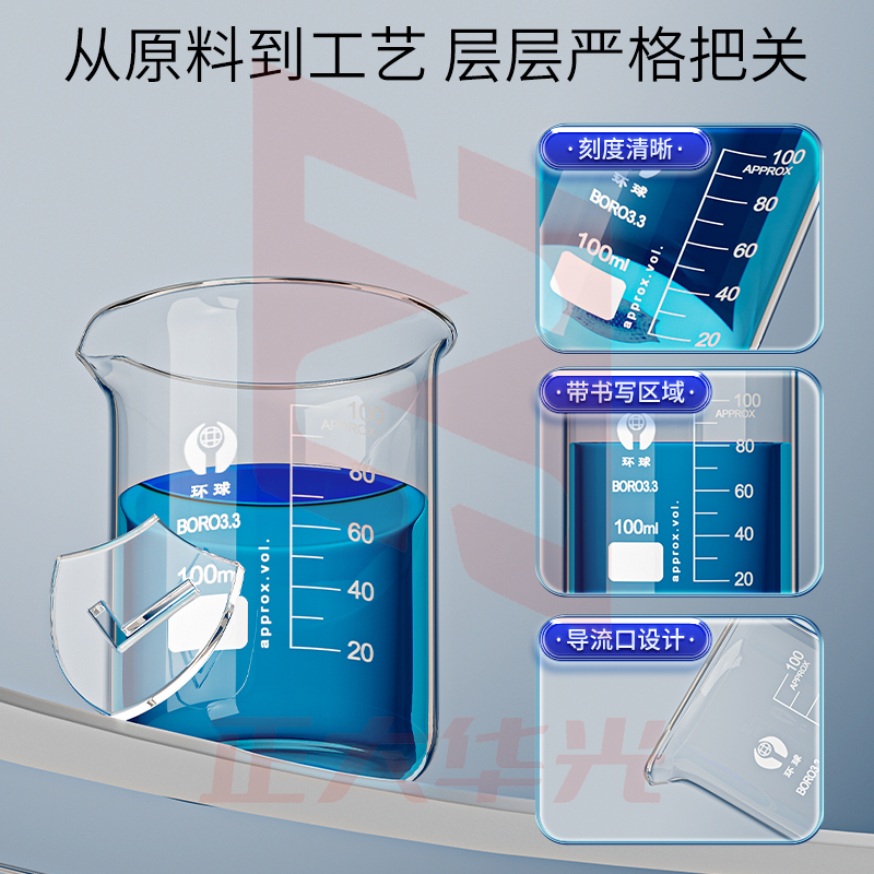 环球牌玻璃烧杯3000ml毫升烧杯刻度杯化学器材实验室玻璃器皿
