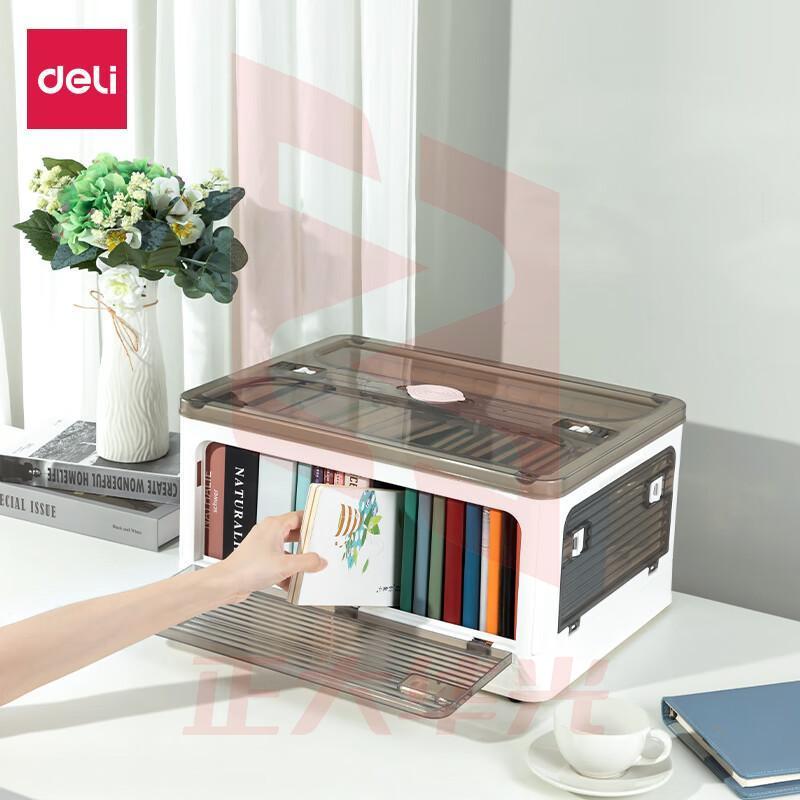 得力(deli)白色PG100可折叠书籍收纳箱透明书箱书本大号整理箱学生宿舍储物箱带滑轮XTGM202302131521202