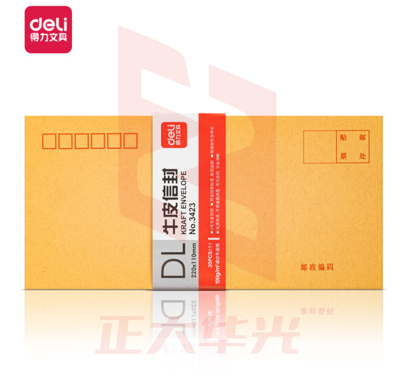 得力3423牛皮信封(米黄色)-5号(20个/包)(5包起售)) XTGM202301291348311