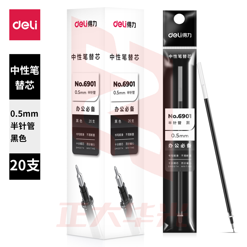 得力6901中性笔芯0.5mm半针管(黑)(20支/盒)XTGM04170851562116
