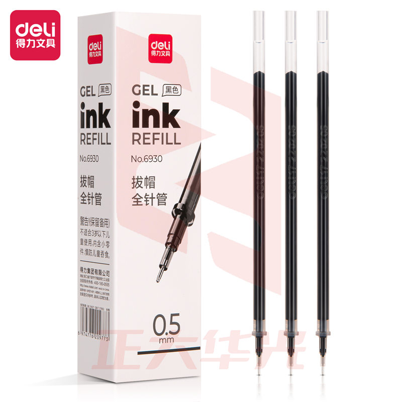 得力6930速干中性笔替芯0.5mm拔帽全针管(黑)(20支/盒)XTGM04170911017475