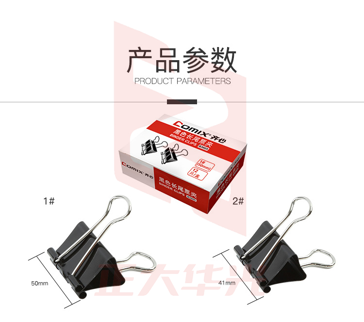 齐心 B3607黑色长尾票夹 3# 32mm 12只/盒