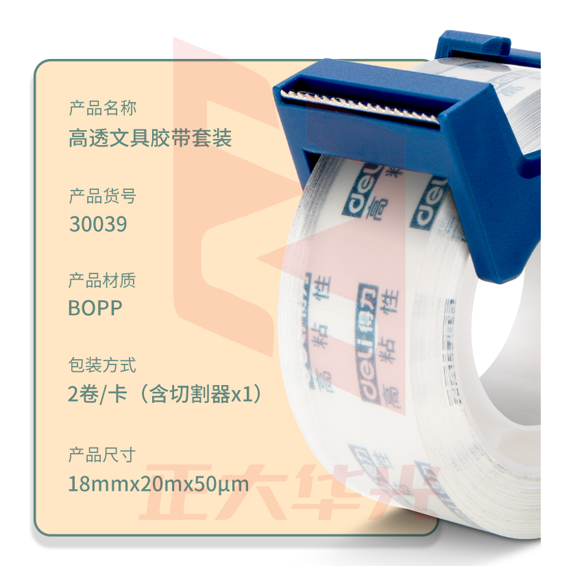 得力30039强韧型文具胶带套装18mm*20m*50μm(高透)(2卷/卡)XTGM02281243147676
