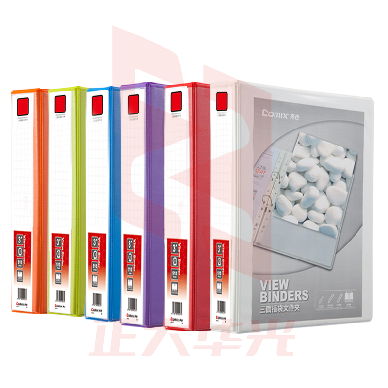 齐心 A0238 易展示 美式三面插袋文件夹 A4 4寸3孔D型夹 白色 XTGM02090753371650