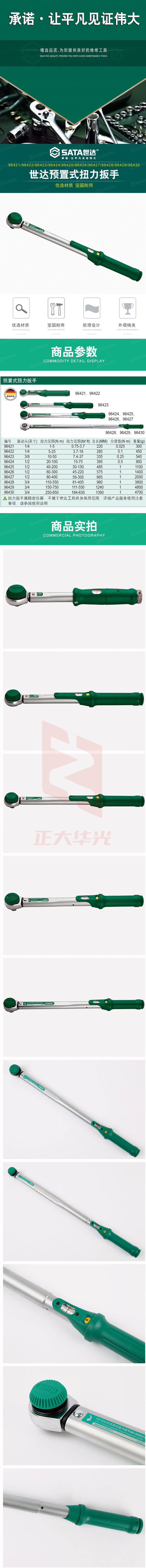 世达(SATA) 96423 3/8`G系列预置式扭力扳手10-50Nm