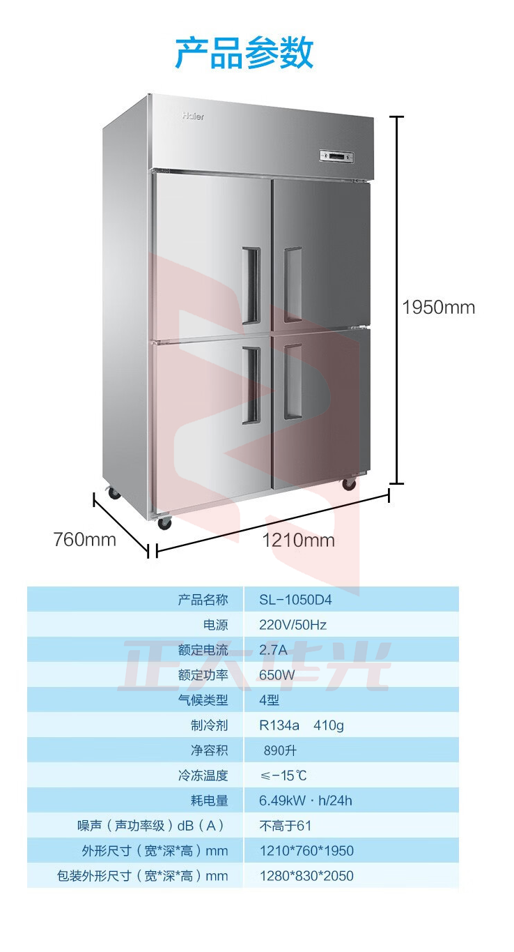 海尔(Haier)890升商用不锈钢四门厨房冰柜 饭店酒店立式单温冷柜 商用冰箱SL-1050D4 XTGM202301311042121