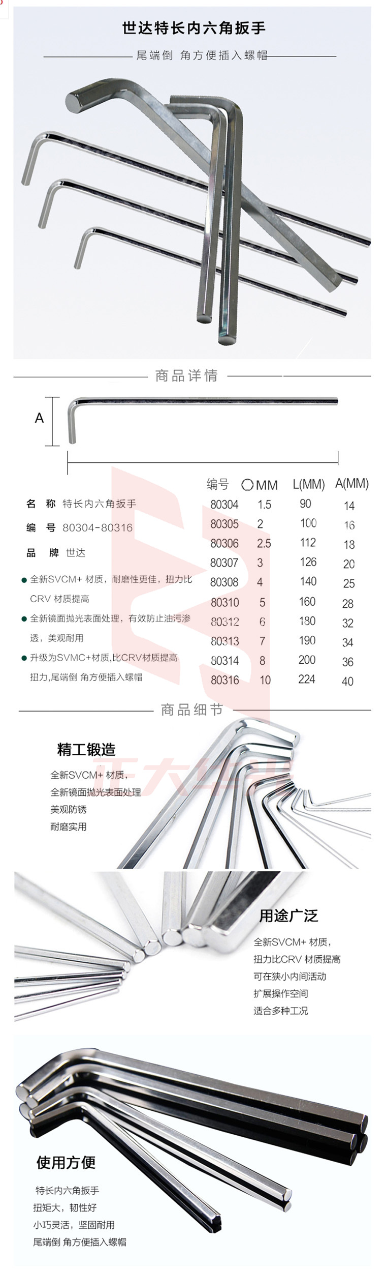 世达 80308 公制加长内六角扳手4mm(计价单位:把)