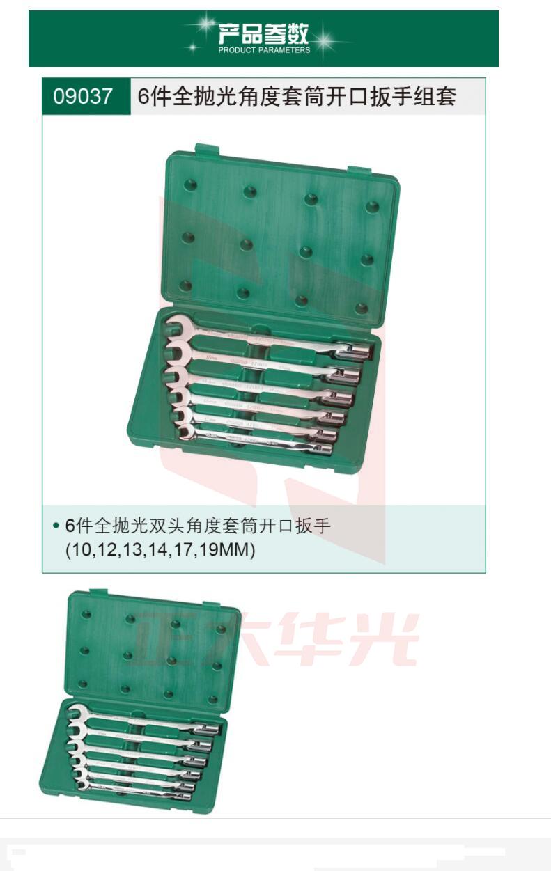 世达(SATA)6件全抛光角度套筒开口扳手组套 09037