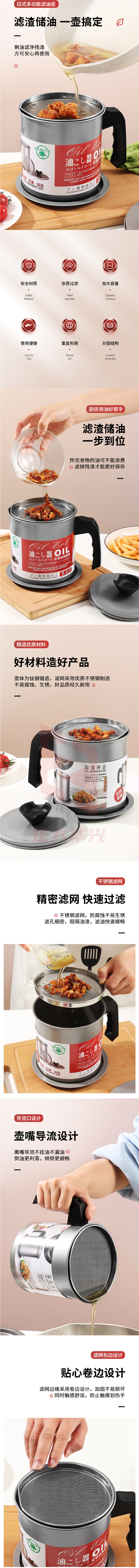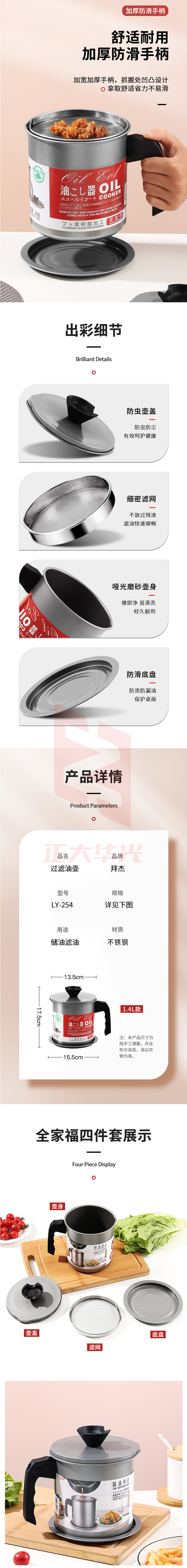拜杰 滤油壶带过滤网沥油壶不锈钢滤网油罐油瓶多功能防漏调料器皿储存罐厨房用品1.4L LY-254