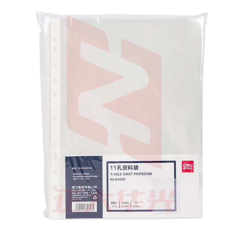 得力64050_11孔资料袋(透明)(100个/包)XTGM02260907264426