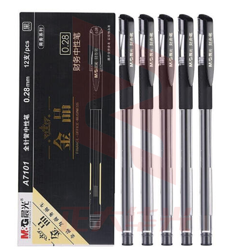晨光 0.28mm黑色细水笔AGPA7101 中性水笔针管尖细笔 12支 XTGM01280812302696