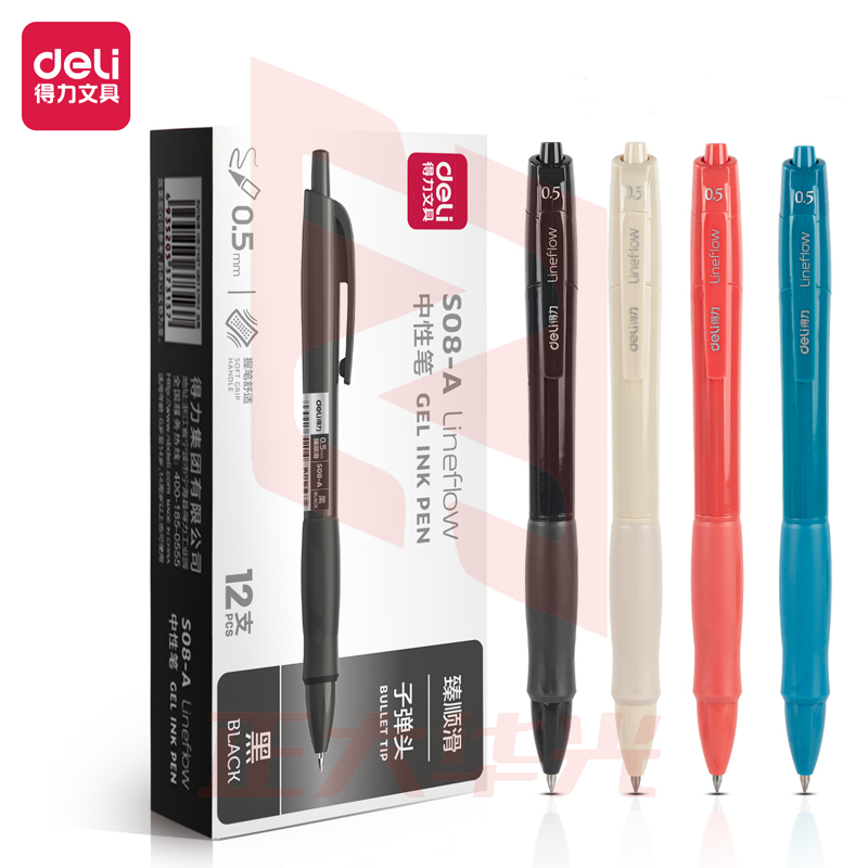 得力S08-A臻顺滑办公中性笔0.5mm弹簧头(黑)(支)XTGM0411143129262